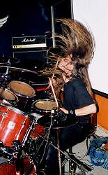 Als wir uns Anfangs 2000 zu vorliegender Demo CD entschlossen, erklärte sich- da wir bis anhin den geeigneten Schlagzeuger noch nicht gefunden hatten- Philipp Eichenberger (PX- Pain) bereit selbiges für die Aufnahmen einzuspielen. Nach den Aufnahmen verliess Tobias die Band aus familiären Gründen wieder und Nathan wurde definitiv mit dem Programmieren der Keyboards beauftragt, was zu einer gewissen Konkretisierung des Soundstyls führte. Im August 2000 ist Schlagzeuger Peter Schuler (Ex- Amon/ Messiah) als festes und viertes Bandmitglied zu uns gestossen. Mit ihm bestritten wir unser erstes Konzert unter dem Namen GEZEITEN am 6. Oktober 2000. |
